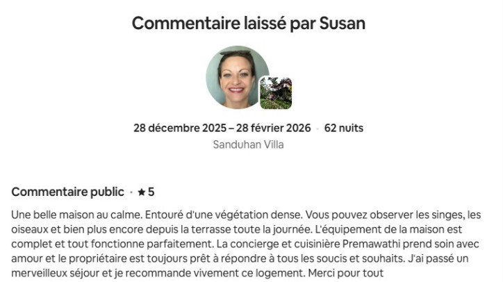 Environnement calme!!! Sanduhan Villa est située dans une forêt naturelle, entourée d'une plantation de caoutchouc.